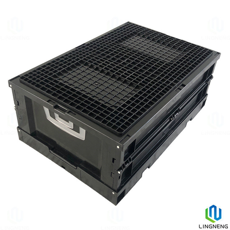ভাঁজযোগ্য স্টোরেজ বক্স প্লাস্টিক ভাঁজযোগ্য বিন সংযুক্ত ঢাকনা 600 * 400 * 240mm